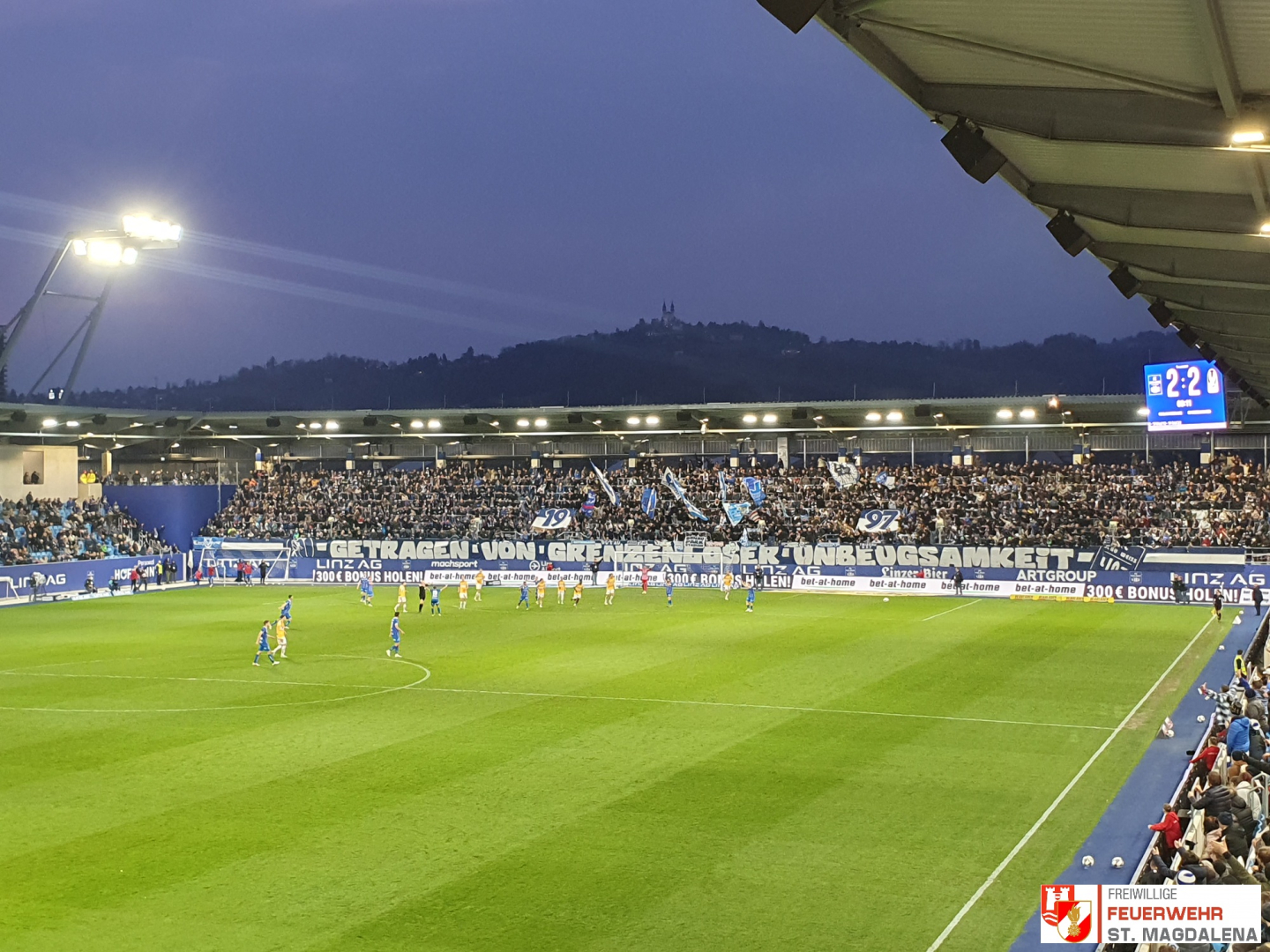 Am 21. März 2026 waren wir zur Brandsicherheitswache mit dem Rüstlöschfahrzeug beim Bundesligaderby zwischen dem FC Blau Weiß Linz und der SV Ried im Hofmann Personal Stadion.