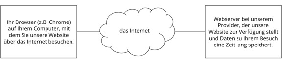 Worte, daher zeigt folgende Grafik zur Veranschaulichung das Zusammenspiel zwischen Browser, dem Internet und dem Hosting-Provider.